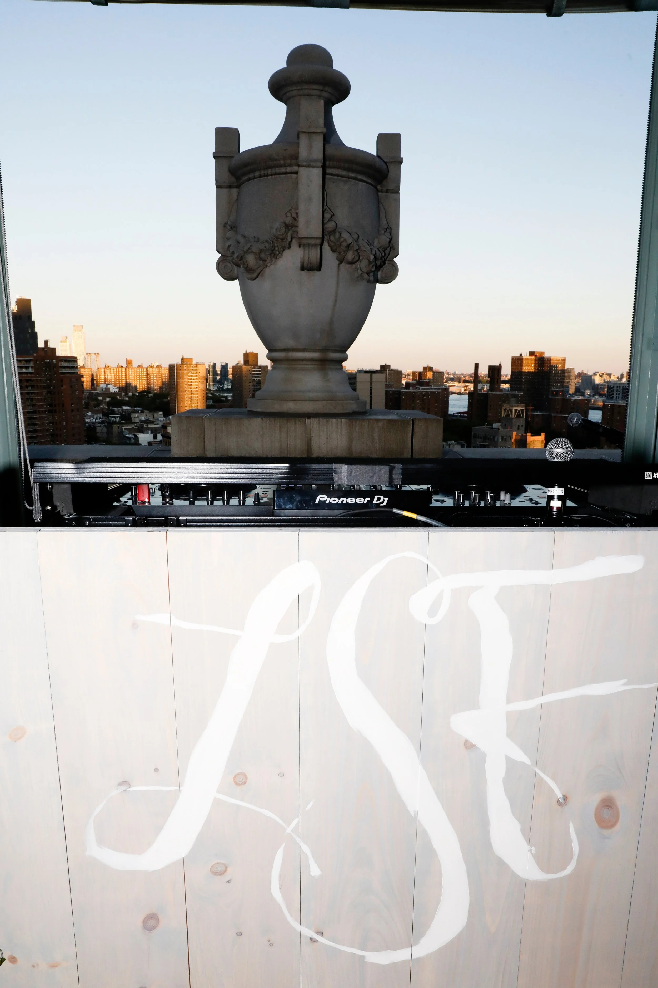 Hand-painted step-and-repeat and DJ booth for LoveShackFancy Spring ‘26 NYFW Presentation